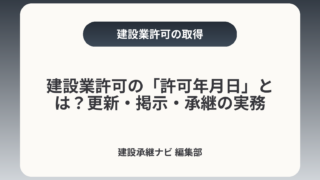 建設業許可の「許可年月日」とは?更新・掲示・承継の実務許可年月日とは「許可の有効期間の開始日」を指し、更新管理・現場掲示・M&Aや事業承継での扱いに直接影響します。本記事では、経営者が冷静に判断できるよう実務面のポイントを簡潔に整理します。...