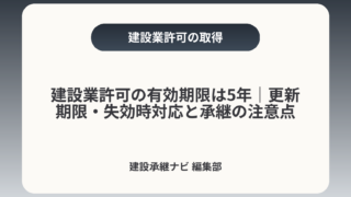 建設業許可の有効期限は5年|更新期限・失効時対応と承継の注意点建設業の許可は原則として許可日から5年で満了し、満了日の30日前までに更新申請を行わないと失効する可能性があります。事業承継や売却の際は、許可が自動で移転しない点や経審・元請実績...