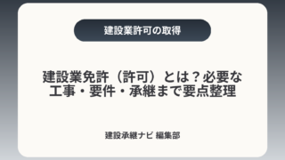 建設業免許(許可)とは?必要な工事・要件・承継まで要点整理建設業免許(一般には「建設業許可」と呼ばれます)は、軽微な工事を除く工事を継続的に受注するための公的な基盤です。許可の取得・更新・変更管理や、経審・元請実績・社会保険の整備が事業価値...