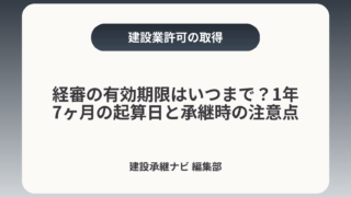 経審の有効期限はいつまで?1年7ヶ月の起算日と承継時の注意点経営事項審査(経審)の有効期間は、審査基準日(通常は直近の決算日)から「1年7ヶ月」です。通知書の到着日ではなく基準日で起算される点と、M&A・事業承継の局面では扱いが分かれるため...