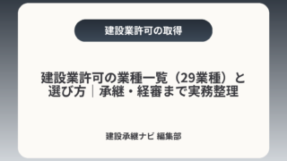 建設業許可の業種一覧(29業種)と選び方|承継・経審まで実務整理建設業の許可は法定の29業種に明確に区分されますが、経営判断で重要なのは「どの業種を持つか」だけでなく、附帯工事の判定や一般/特定の区分、さらに事業承継・M&A時の許可引継ぎや...