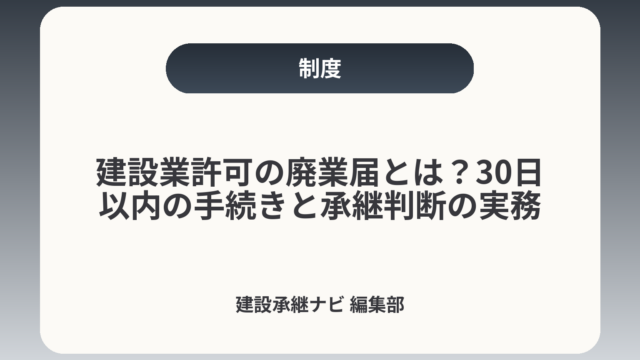 建設業許可の廃業届とは?30日以内の手続きと承継判断の実務
