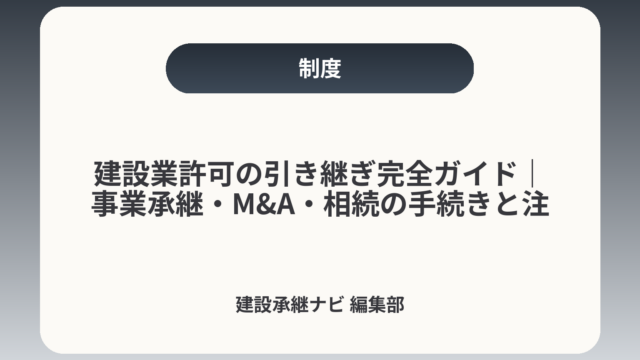 建設業許可の引き継ぎ完全ガイド|事業承継・M&A・相続の手続きと注意点