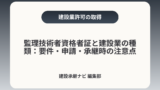 - 元請として大規模工事を下請に出す場合は特定建設業の要件が関係し、専任技術者や指導監督経験が追加で求められる点を押さえる。