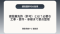 - 許可が必要かどうかは「請負金額や工事の種類」によって線引きされ、軽微工事の基準を越えると原則として許可が要る点。