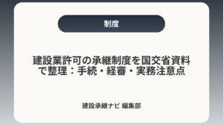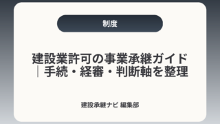 期限や流れ、経審や入札資格、税務・労務の注意点まで実務的に整理した記事です。申請準備だけでなく承継後の受注継続を重視する経営者におすすめです。