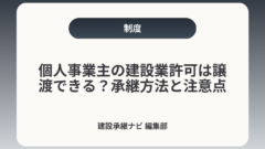 令和2年(2020年)10月1日の建設業法改正で、事前に認可を受けることにより事業譲渡・合併・分割等で許可の地位を承継できる仕組みが導入されました。これは従来の「原則新規申請」からの大きな変化で、適切に使えば許可空白を回避して事業継続性を確保できます。出典:国土交通省(建設業法改正の概要)