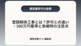 軽微な工事の基準(建築一式は1,500万円未満、その他は500万円未満・消費税等を含む)に該当する場合は許可不要となることが多い一方で、契約の変更・追加や分割請負で総額が基準を超えると許可が必要になる点に注意が必要です。出典:国土交通省「建設業の許可とは」