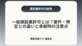 • 業種の追加や般⇄特の区分変更は許可情報の更新を伴い、許可要件(技術者・財務など)にも影響する点を確認すること。