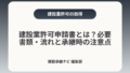 範囲に関する実務上の判断基準は、元請として直接請け負った工事の現場ごとに掲示するかどうかで変わります。落とし穴は、下請業者の掲示が不要と誤認し、元請が掲示を怠ることです。回避策として、工事契約書のひな形に掲示責任を明記し、現場着手時のチェック項目(許可票掲示の有無)を安全パトロールの定型作業に組み込むことが有効です。