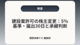 承継やM&Aで許可や経審、実績の扱いに迷う経営者向けに、国交省の位置づけや審査で見られるポイントを整理しています。住所変更が承継スキームに与える影響を把握するのに役立ちます。