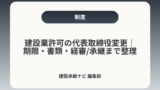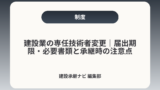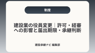 決算変更届や経審に直結する専任技術者の配置・変更について、届出期限や実務上のミス例、M&A・承継時の論点を整理した記事です。技術者交代が許可要件に与える影響を確認したい経営者に向いています。