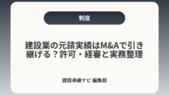 • M&A別(株式譲渡/事業譲渡/会社分割)に許可・経審・元請実績がどう変わるかの実務的な違い。