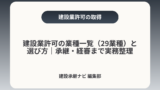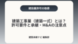 建設業免許(許可)とは?必要な工事・要件・承継まで要点整理建設業免許(一般には「建設業許可」と呼ばれます)は、軽微な工事を除く工事を継続的に受注するための公的な基盤です。許可の取得・更新・変更管理や、経審・元請実績・社会保険の整備が事業価値...