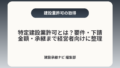 - 特定建設業に該当するかを短時間で判定するポイント(一次下請の合算基準・建築一式の扱いなど)。